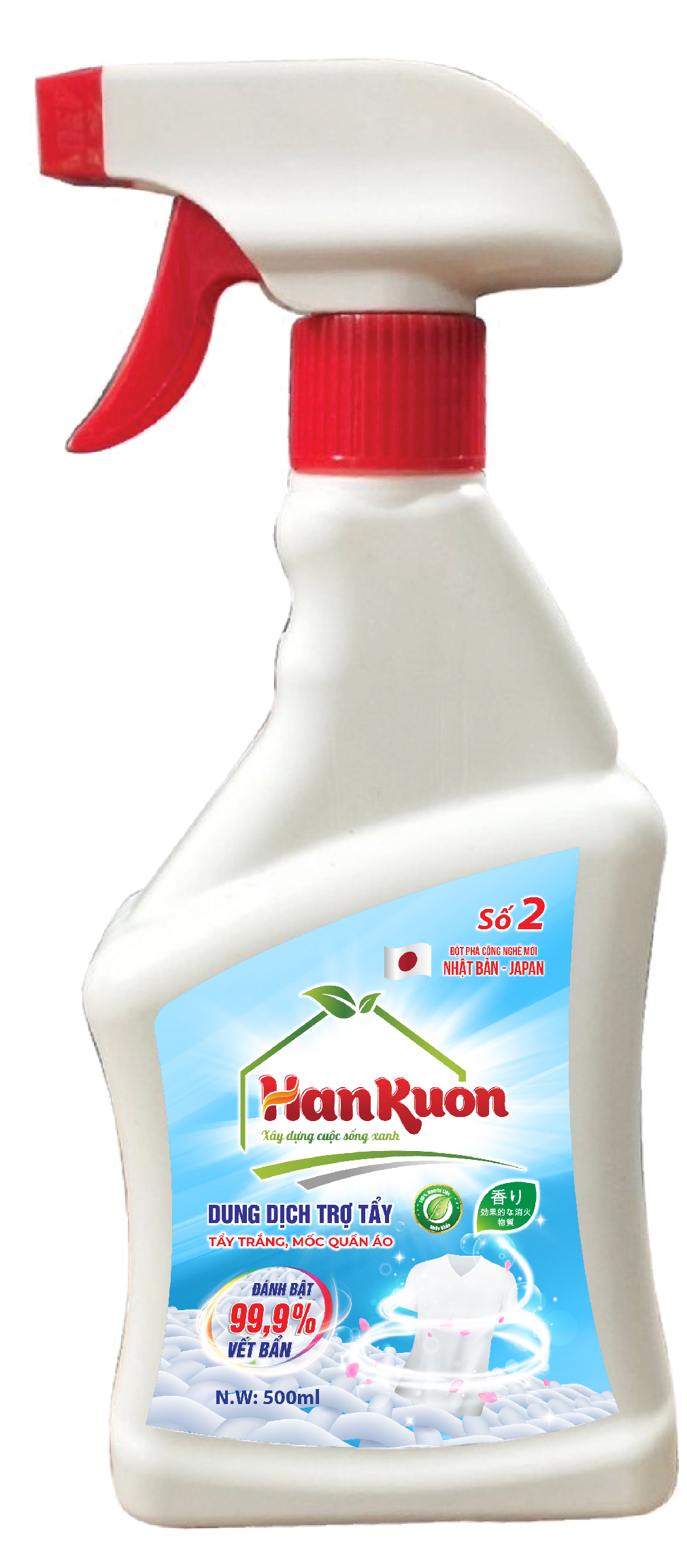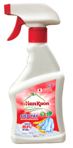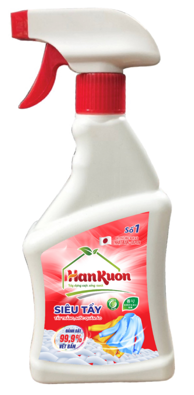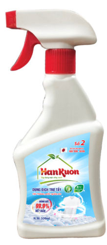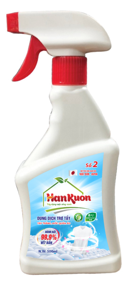 - Bước 2: Xịt chai dung dịch trợ tẩy (sản phẩm số 2) xịt đều lên các khu vực cần tẩy, ngâm 20 – 30 phút tùy theo độ nặng nhẹ của từng vết mốc;
